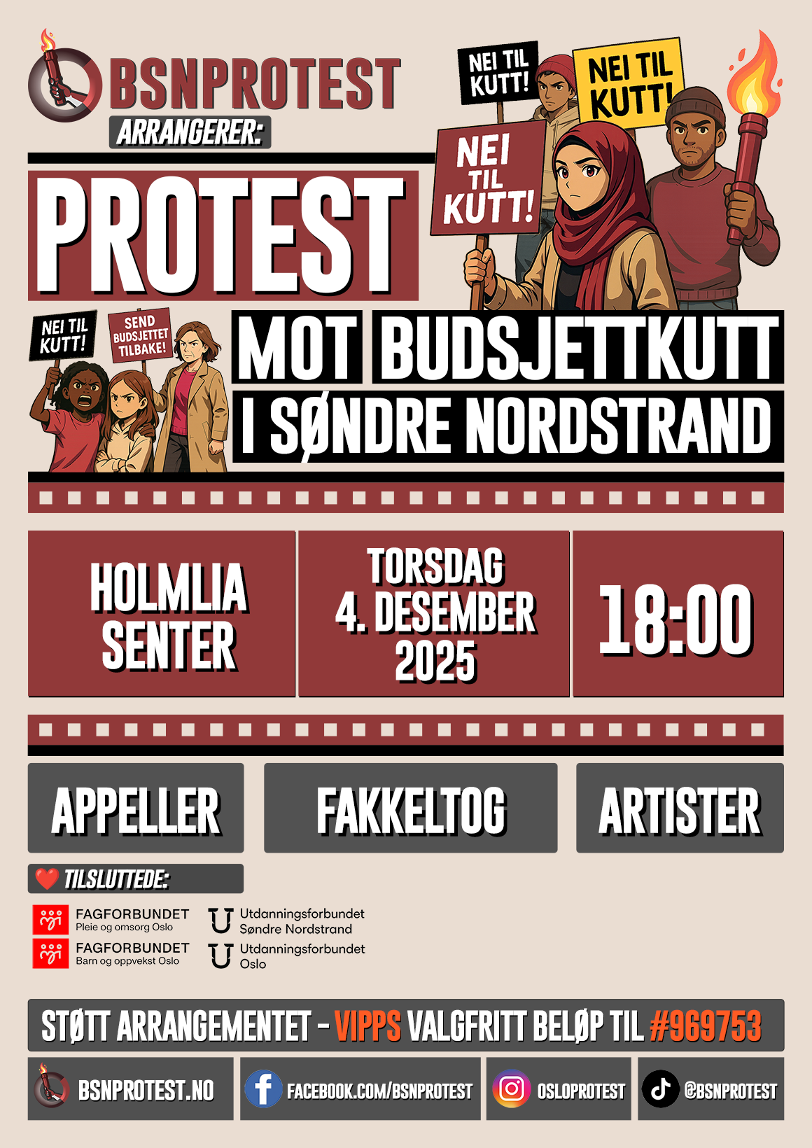04des.18:0020:00Protest mot budsjettkutt i Søndre Nordstrand